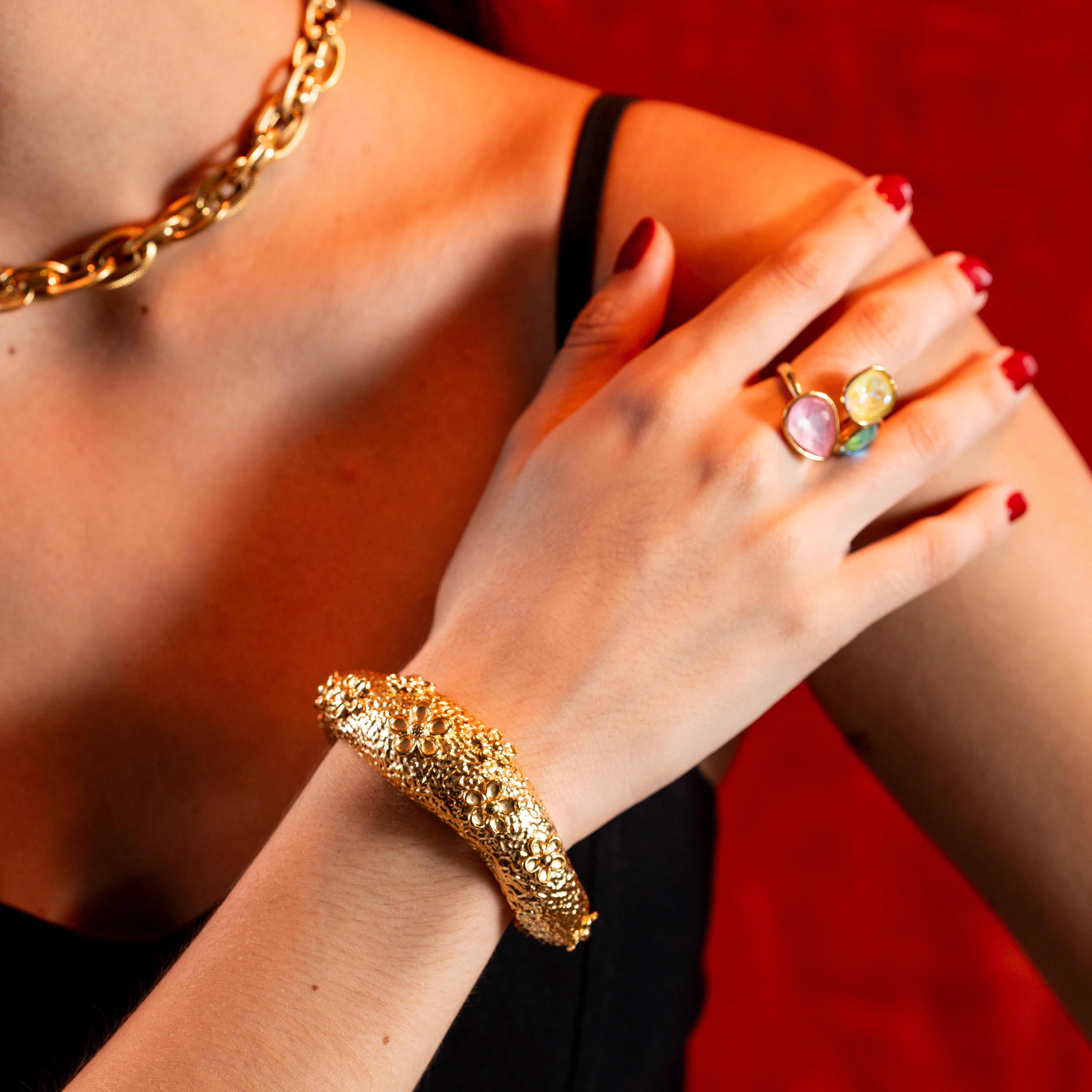"Llevo 6 meses utilizando mis accesorios y no se despintan. Me encanta que el brillo siga intacto."