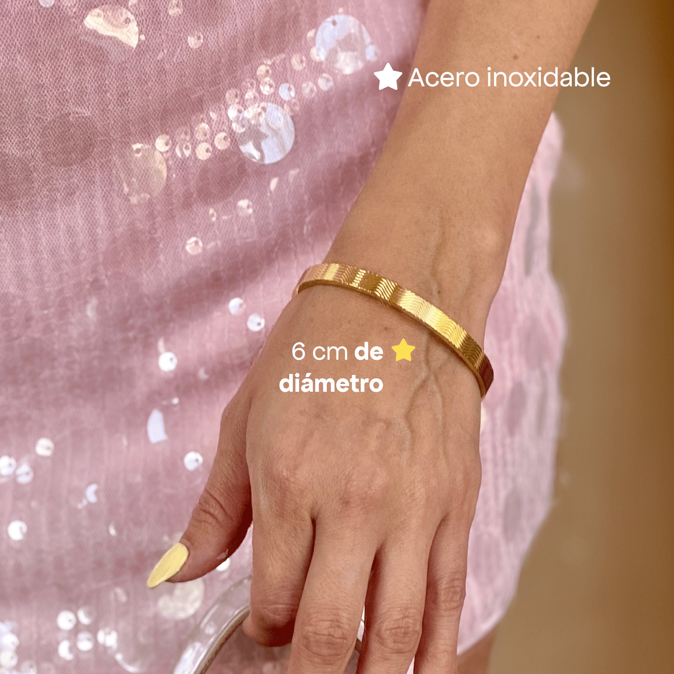"Llevo 6 meses utilizando mis accesorios y no se despintan. Me encanta que el brillo siga intacto."