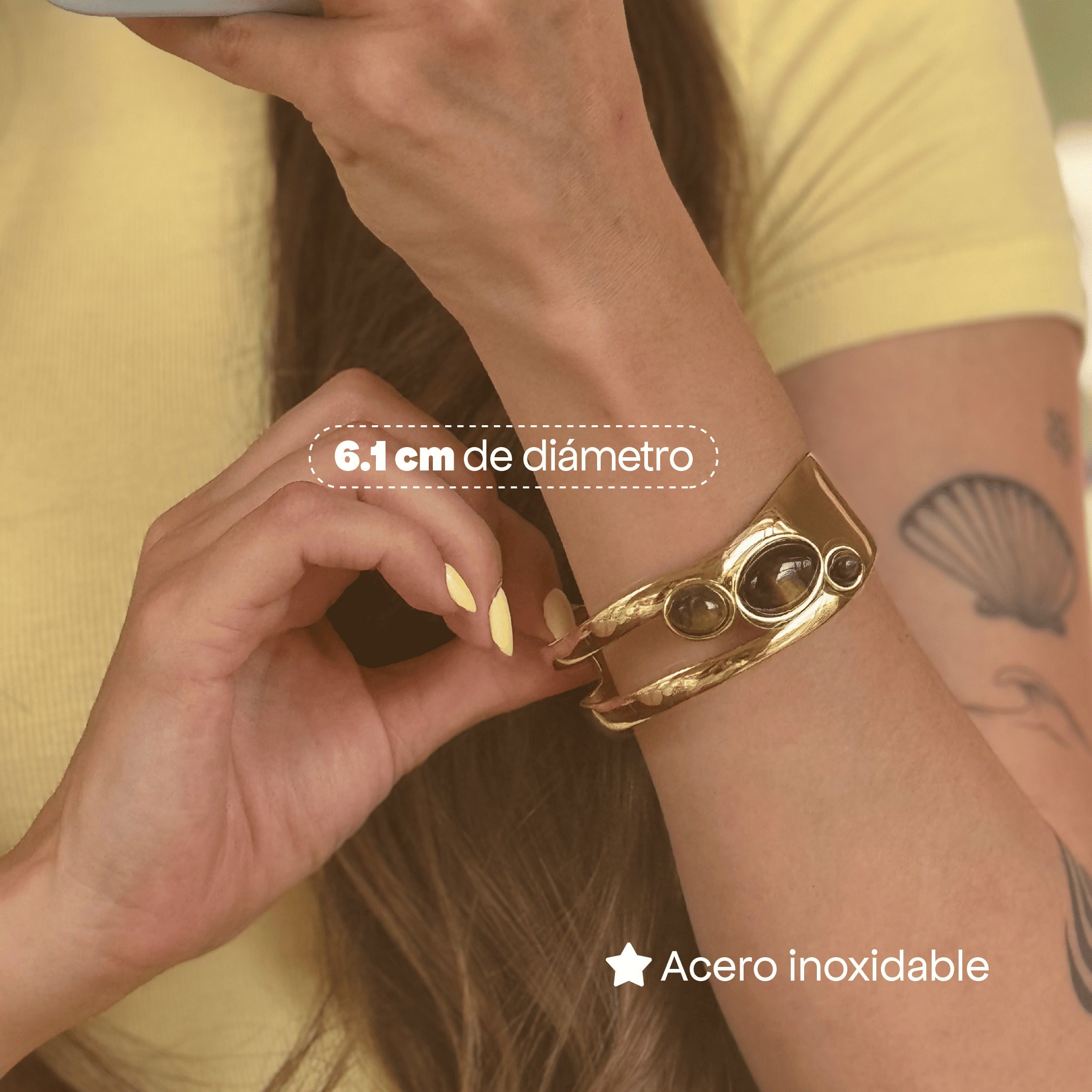 "Llevo 6 meses utilizando mis accesorios y no se despintan. Me encanta que el brillo siga intacto."